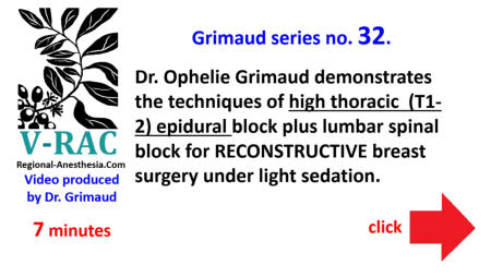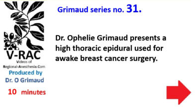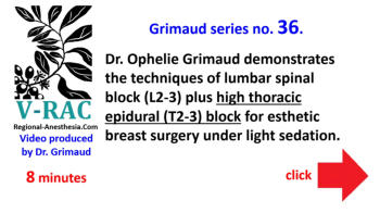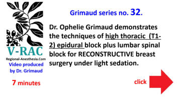 Grimaud Chapter E: Neuraxial blocks for Breast surgery.This chapter hosts the unique eductional-technique videos of Dr. Ophelie Grimaud. There is also selected links to supplementary related materials from elsewhere in RAC.